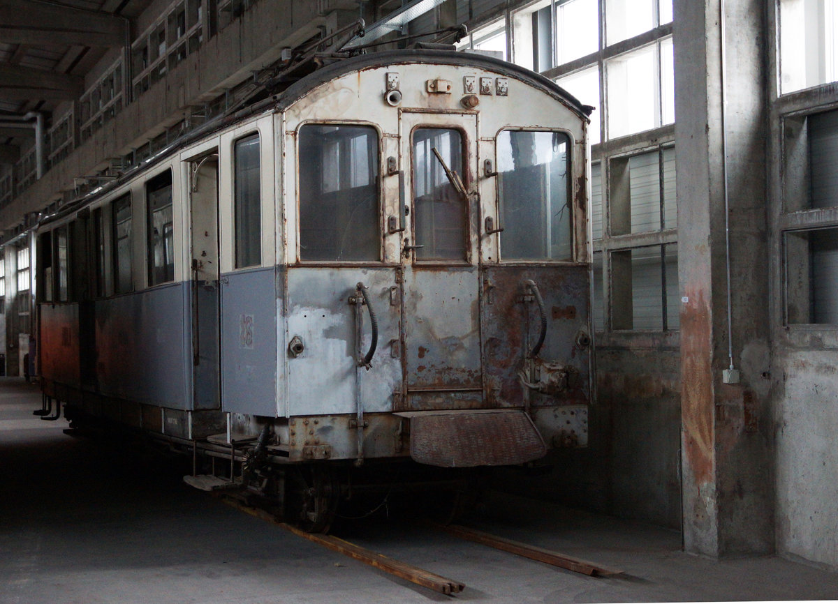 Nach dem Einsatz als Rangiertriebwagen bei der MOB und nach einem Aufenthalt im Ecomusée wartet der BDe 4/4 38, Baujahr 1913, der VBW auf dem Areal des ehemaligen Bernmobil (SVB) Tramdepots Bern Burgernziel sein weiteres Schicksal ab.