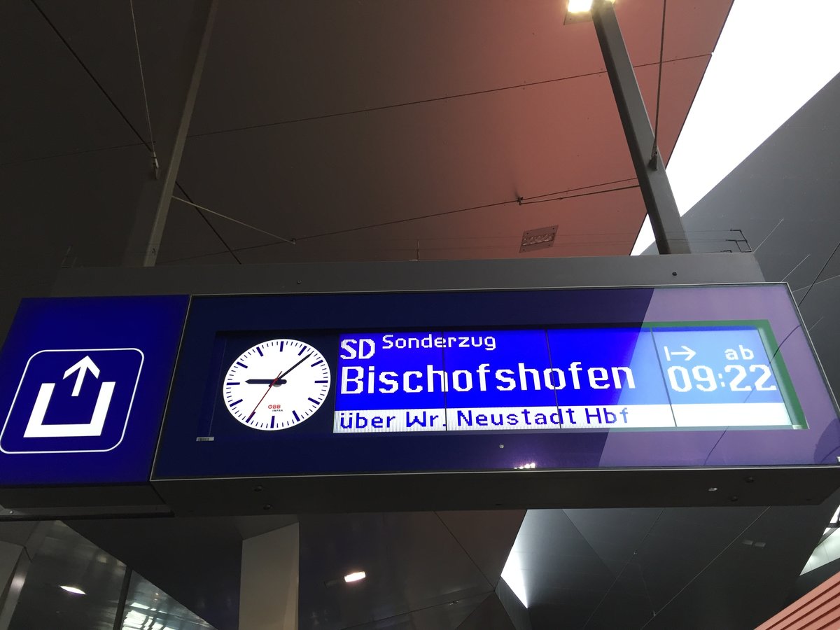 Die Anzeige für den D 15101 (Wien Hbf. - Bischofshofen) am 04.02.2017 am Wiener Hauptbahnhof.