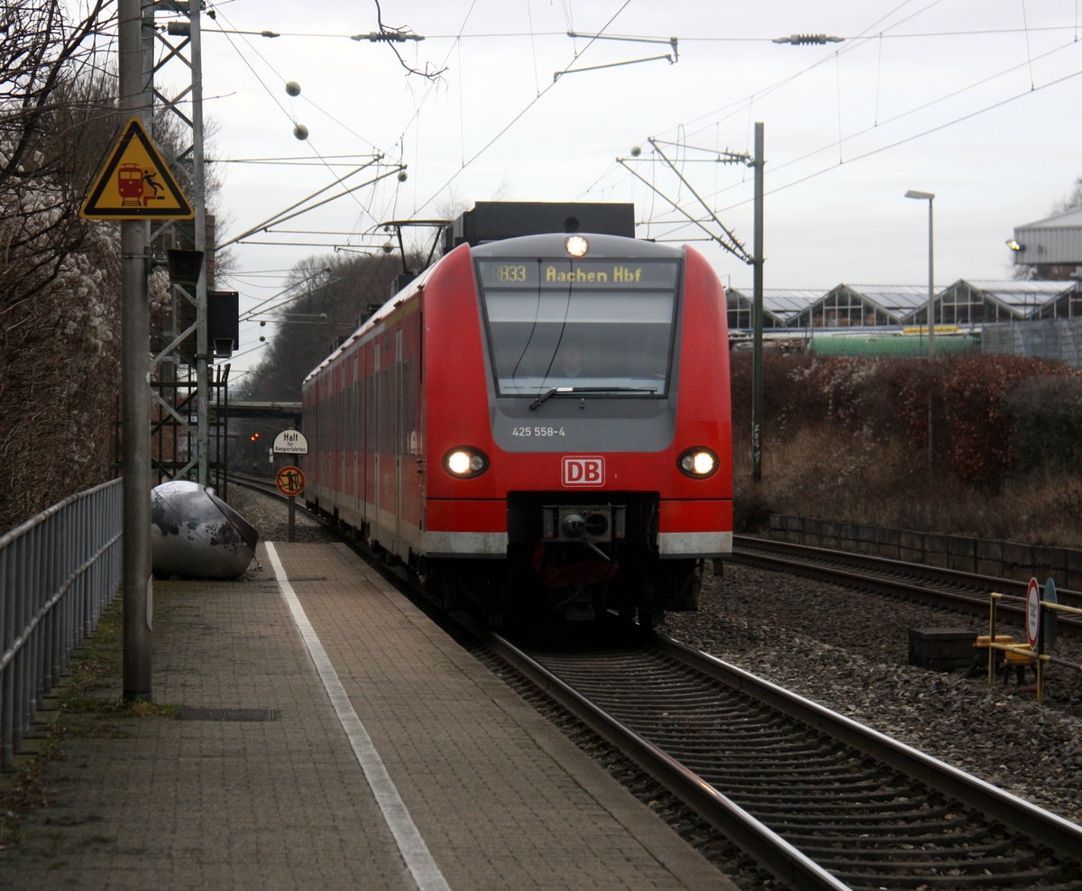 Ein Nachschuss von der Rhein Niers Bahn (RB33) aus Aachen-Hbf nach Heinsberg-Rheinland-Duisburg-Hbf und hilt in Kohlscheid und fährt in Richtung Herzogenrath,Mönchengladbach. Aufgenommen von Bahnsteig 1 in Kohlscheid. Bei Wolken am Kalten Nachmittag vom 1.2.2017.