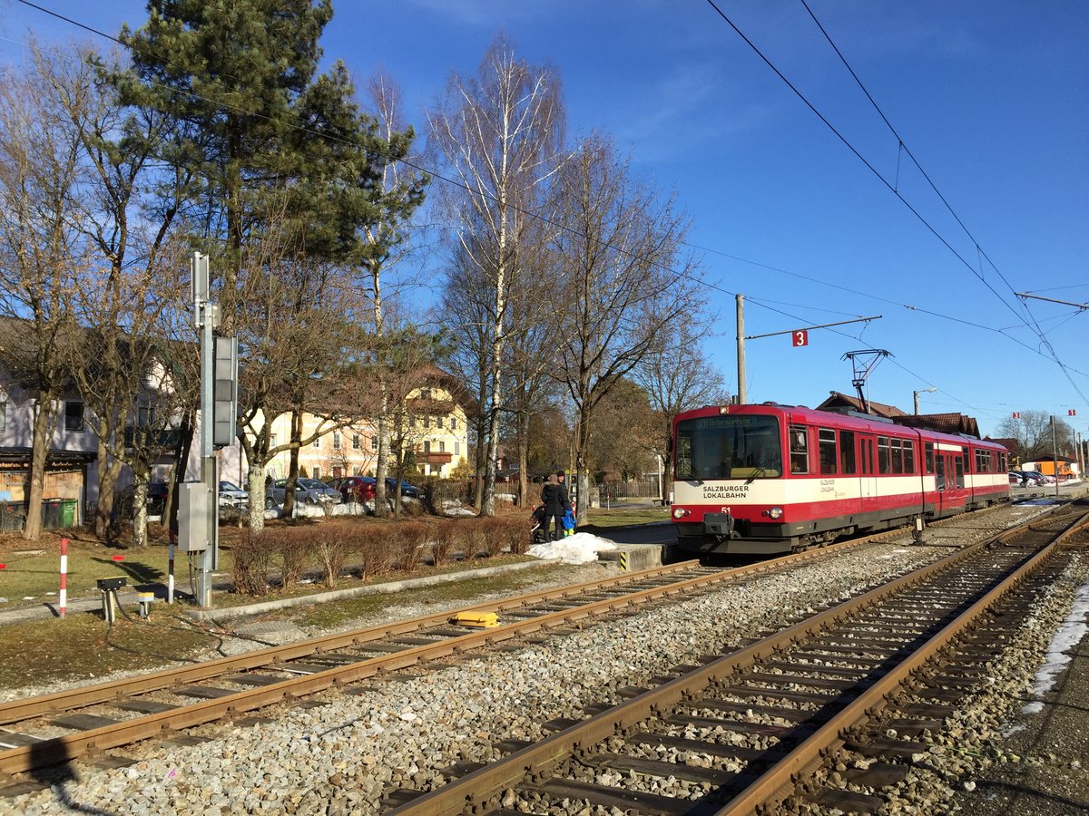 ET 51 der SLB wartet am 05.02.2017 auf seine nächste Fahrt (als S11) von Bürmoos nach Ostermiething.