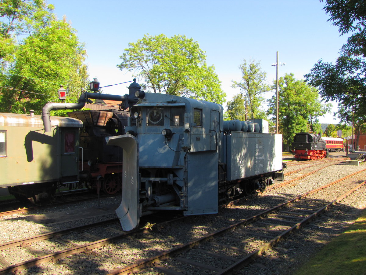 ex. DB 80 80 974 3009 0 Klima Schneepflug, Nür Bw Hof, am 31.08.2016 im Deutschen Dampflokomotiv-Museum in Neuenmarkt-Wirsberg.