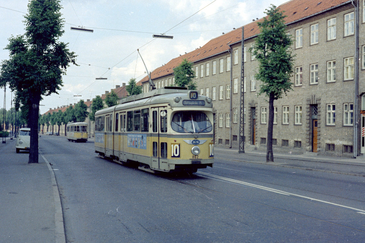 København / Kopenhagen Københavns Sporveje SL 10 (DÜWAG-GT6 852) København NV, Bispebjerg, Frederiksborgvej im Juni 1968. - Scan von einem Farbnegativ. Film: Kodacolor X.