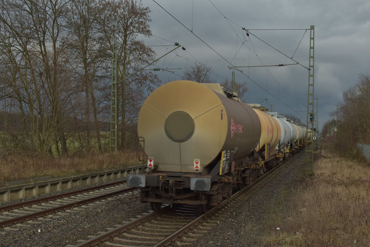 Die  Suppenlok  Akiem 37002 erhält langsam aber sicher eine neue Farbgebung. Monatelang hat Sie wohl keine Waschanlage gesehen! Flüssigeisenzug aus Dillingen (Roheisengesellschaft-Hochofen)nach Völklingen (Saarstahl) bei der Durchfahrt in Bous. 04.02.2017