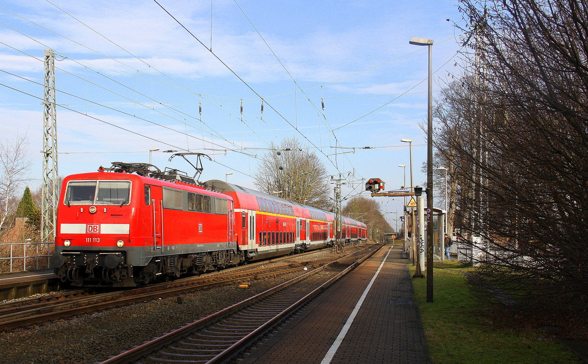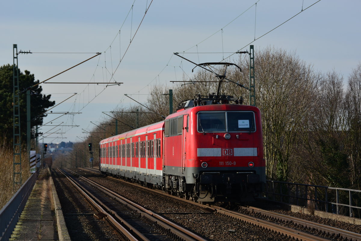 111 115 DB kommt die Kohlscheider-Rampe hoch aus Richtung Neuss,Herzogenrath mit dem RE4 aus Dortmund-Hbf nach Aachen-Hbf und fährt durch Kohlscheid in Richtung Richterich,Laurensberg,Aachen-West,Aachen-Schanz,Aachen-Hbf. Aufgenommen vom Bahnsteig 1 in Kohlscheid. Bei Sonnenschein am Kalten Vormittag vom 2.2.2017.