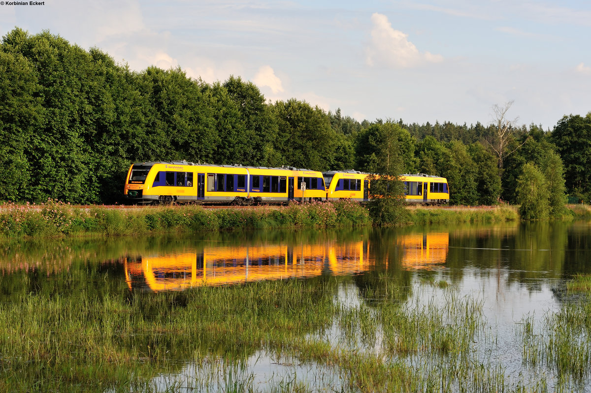 1648 208 und ein weitere Einheit als OPB79742 von Regensburg nach Marktredwitz vor Wiesau, 28.07.2016