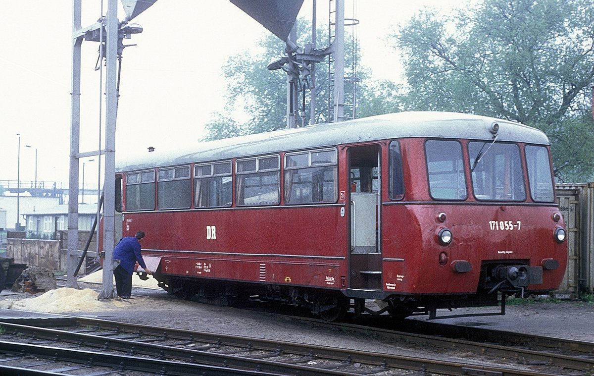 Am 7.4.1990 befuhr eine vierteilige Schienenbus Einheit der Seelzer Eisenbahnfreunde den Haller Willem nach Osnabrück. Hier ist der Zug im Haltepunkt Osnabrück - Sutthausen zu sehen. Als vorderer Motorwagen lief 796901.