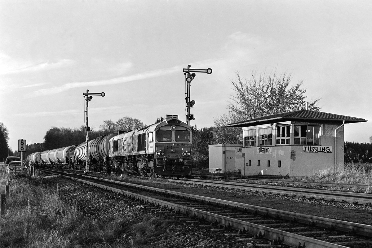 247 016-8 fährt mit ihrem Kesselwagenzug von Mühldorf nach Burghausen in den Bf Tüssling ein. Am 20.04.2016 ist das alte Stellwerk mit seinen Formsignalen noch in Betrieb. Diese werden noch im selben Jahr dem zweigleisigen Ausbau der Strecke Mühldorf - Tüssling weichen.