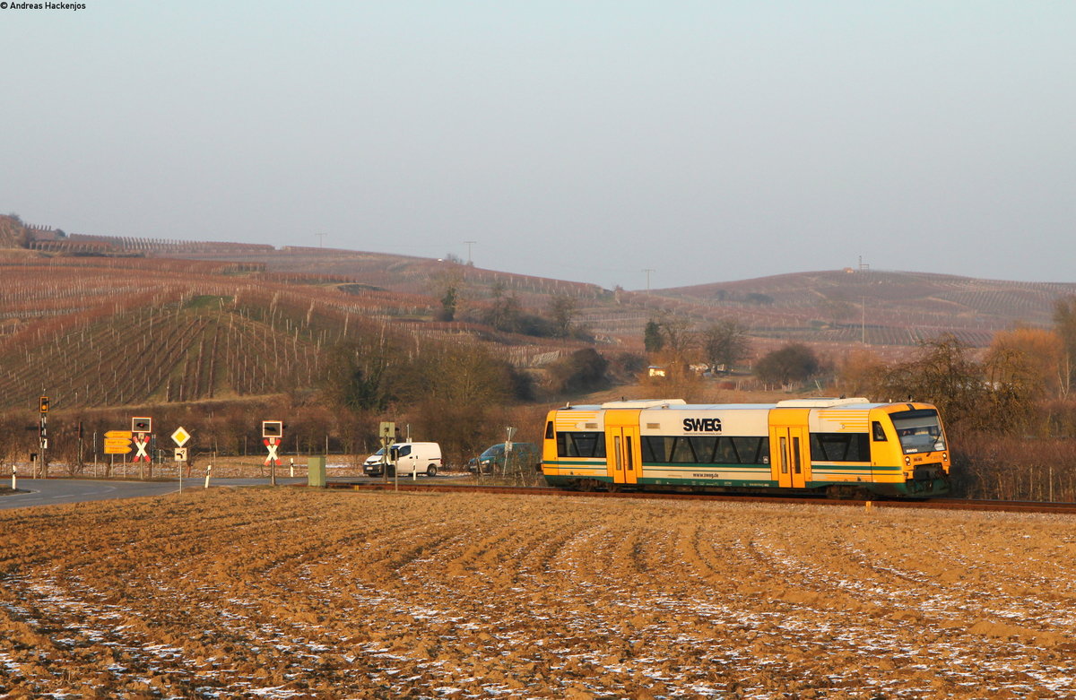 VT 129, VT 128 und VS 204 als SWE74216 (Breisach-Riegel-Malterdingen NE) bei Oberrotweil 26.1.17