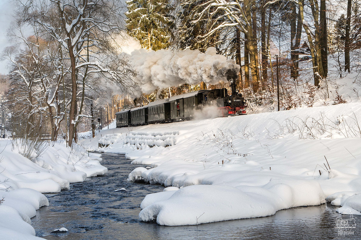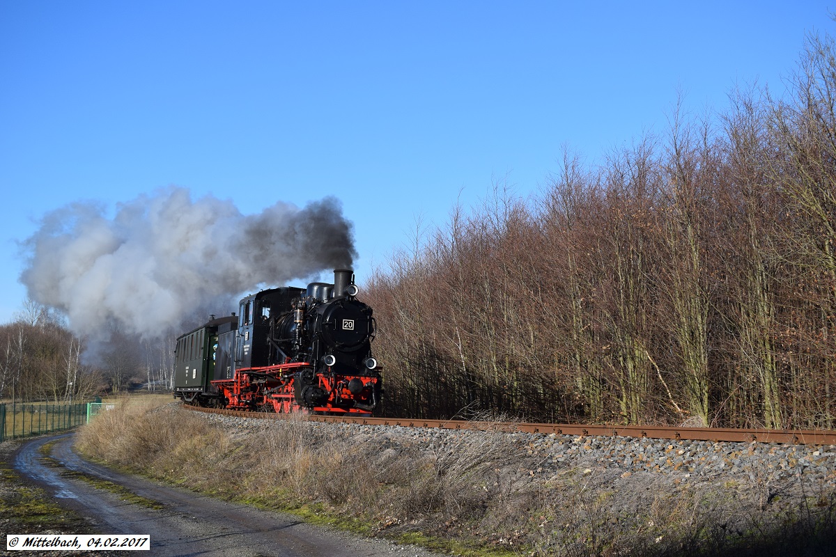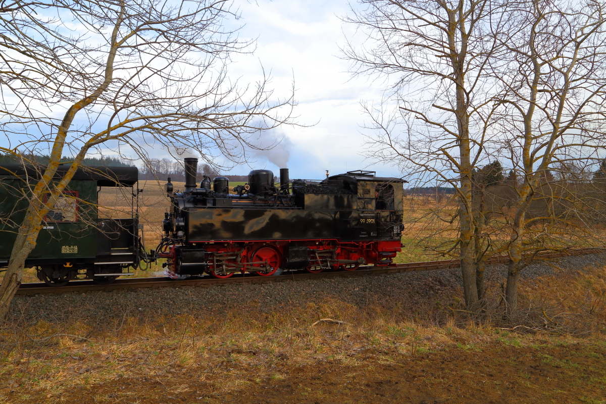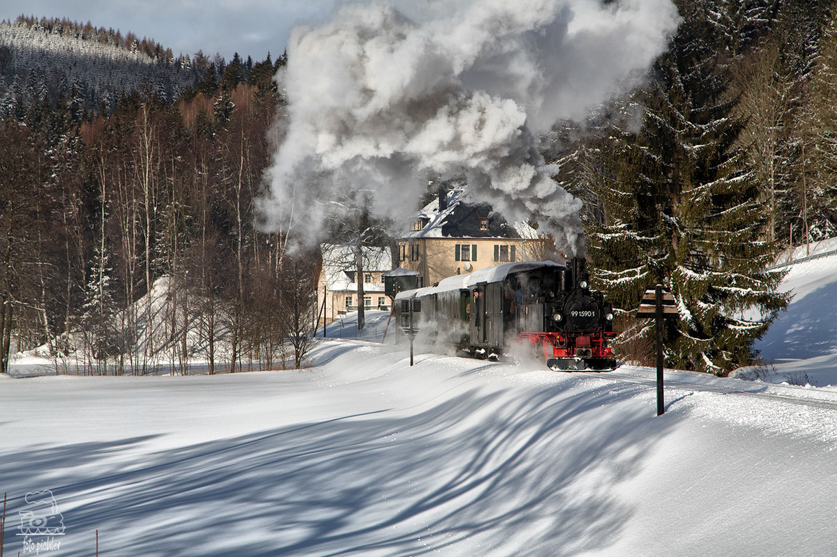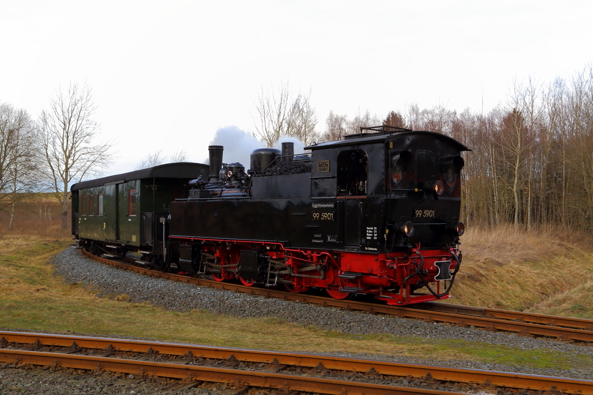 Planzug mit der 99.1590 zwischen HP Forellenhof und Bahnhof Schmalzgrube. 15.1.2017