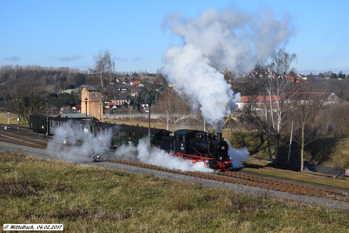 2 x IVk bei der Ausfahrt aus dem Bahnhof Steinbach bei Jöhstadt. - 15.1.2017