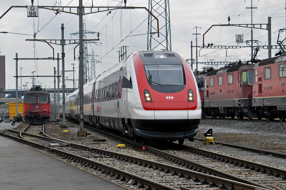 Nach einem Ereignis im Bahnhof Muttenz werden alle Züge durch den Güterbahnhof Muttenz umgeleitet. Hier durchfährt der ICN 500 002 "Annemarie Scharzenbach" den Güterbahnhof. Die Aufnahme stammt vom 06.02.2017.