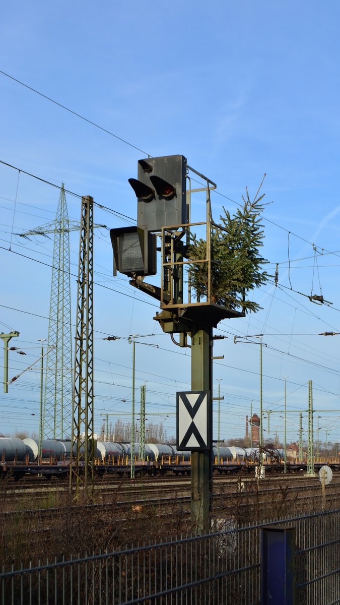 Oh Tannenbaum Oh Tannenbaum. Da hat sich wohl jemand einen kleine Streich erlaubt und steckte den Tannenbaum aufs Vorsignal in Duisburg Bissingheim.