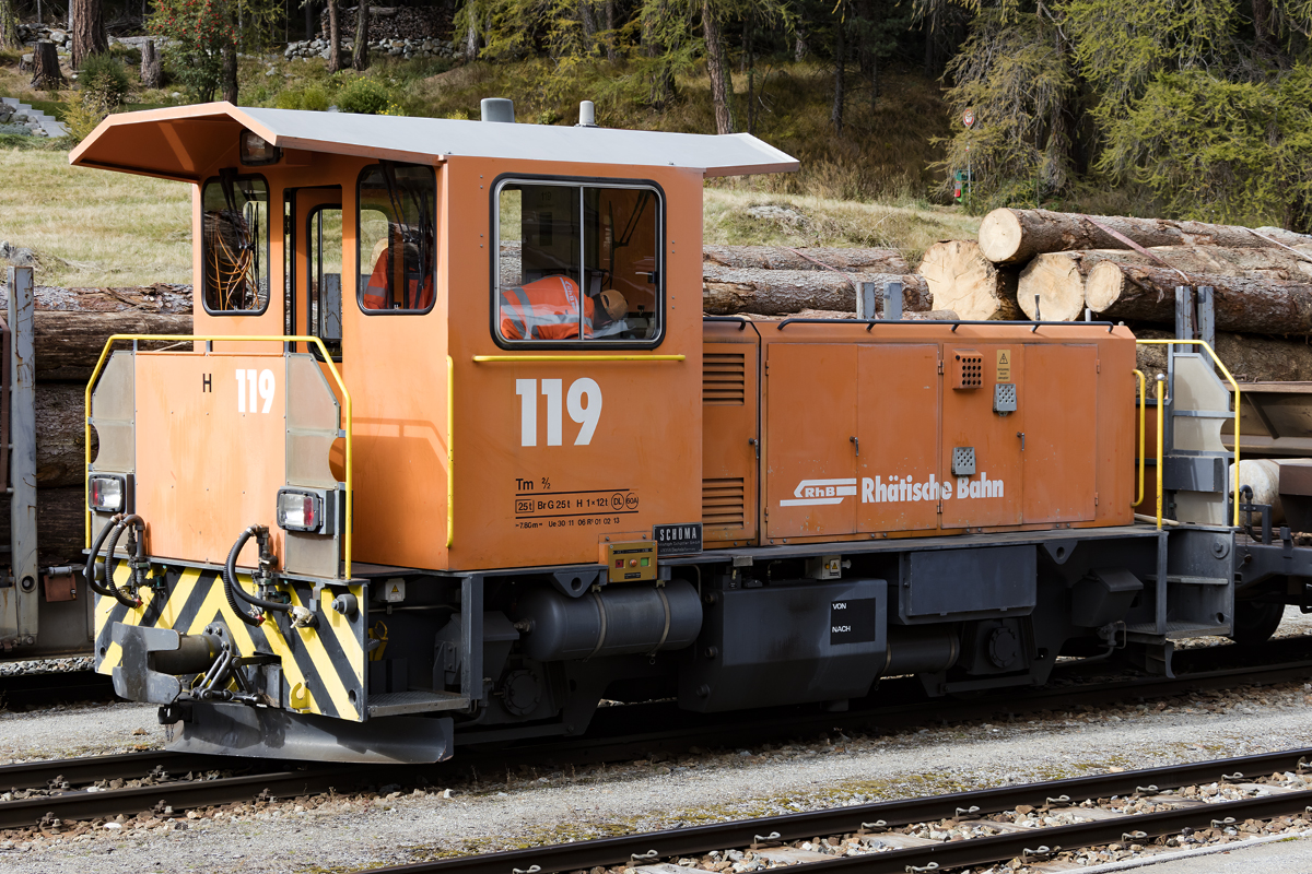 Ein Hublifter auf einem Spezialgüterwagen der RhB in Untervaz-Trimmis. (30.01.2017)