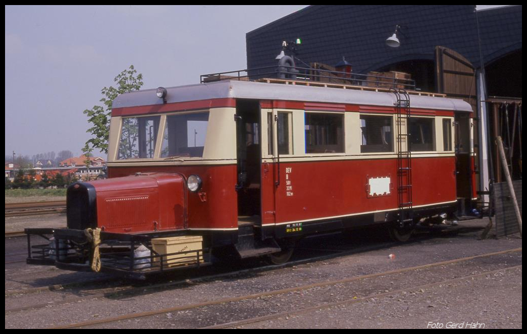 T 41 (Schweineschnäuzchen) der ersten Museums Eisenbahn Deutschlands vor der Fahrzeugremise in Bruchhausen - Vilsen am 22.4.1990.