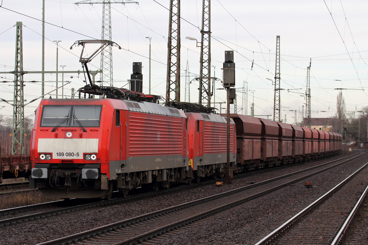 Doppeltraktion, mit den Loks 186 906-4 und 186 905-6 verlassen den Güterbahnhof Muttenz. Die Aufnahme stammt vom 06.02.2017.