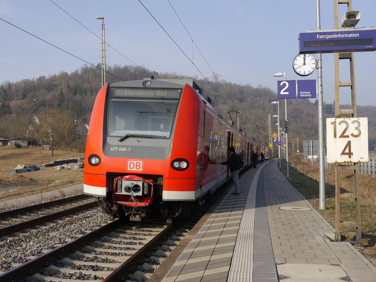 425 146 mit 426 029 fuhr am 28.01.2017 als RB 58112 nach Würzburg in Goßmannsdorf ein.