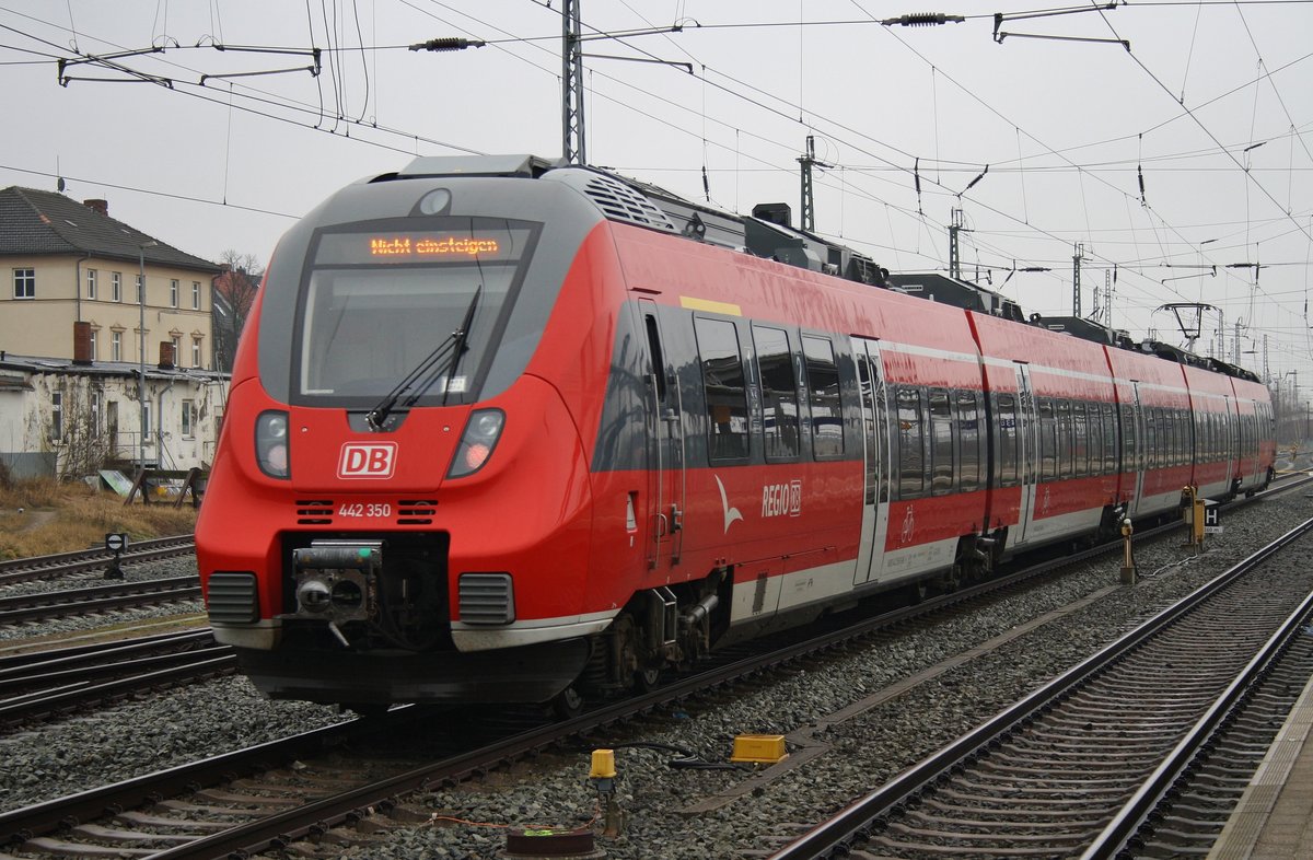 442 350-5 kam am 5.2.2017 als S2 aus Güstrow nach Rostock, soeben wird der Hauptbahnof in Richtung BW verlassen.