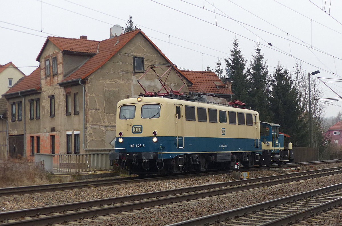 Am 08.02.2017 wurde die 333 068-5 von der 140 423-5 von Halle (S) nach Koblenz-Lützel überführt, hier zu sehen bei der Durchfahrt in Erfurt-Bischleben.
