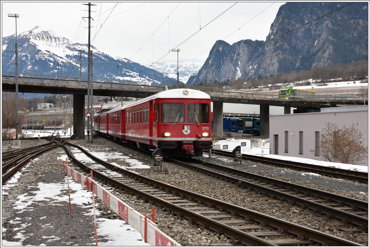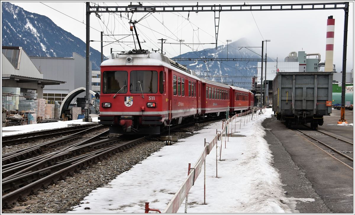 Dienstzug mit Steuerwagen 1711 und Be 4/4 511 auf dem Weg nach Chur in Untervaz-Trimmis. (30.01.2017)