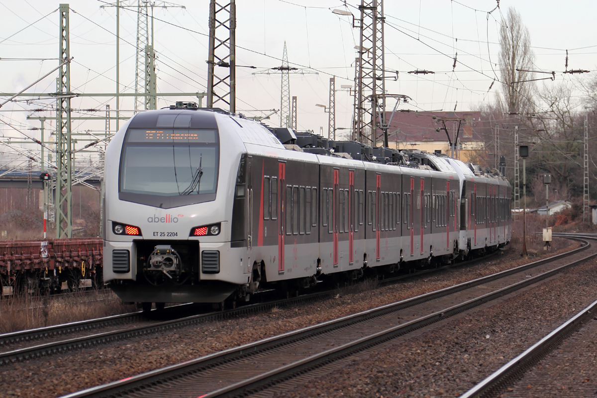 Ein KISS auf der Rollbahn! - Am 4.2.2017 war meines Wissens erstmals ein KISS Doppelstocktriebwagen im Personenverkehr auf der Rollbahn unterwegs. ET 611 der Westfalenbahn brachte rund 600 Fans des VFL Osnabrück zum Auswärtsspiel nach Duisburg. Um 9.23 Uhr kam der Zug durch den Bahnhof Natrup-Hagen.
