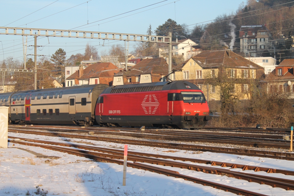 Re 460 103-5 ''Heitersberg'' am 29.1.2017 in Winterthur Grüze am Schluss des IC714 nach Genf-Flughafen