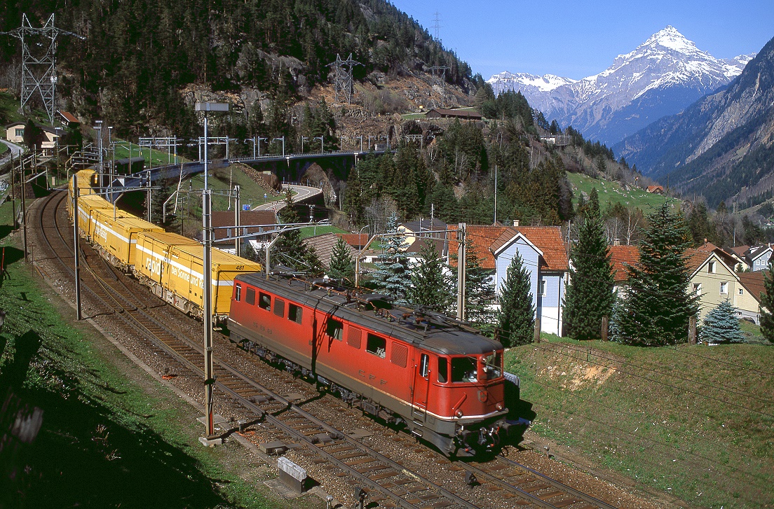 Der von der Re 4/4 II 11121 gezogene Zug konnte am 7. Februar auf Talfahrt in Gasel abgelichtet werden.