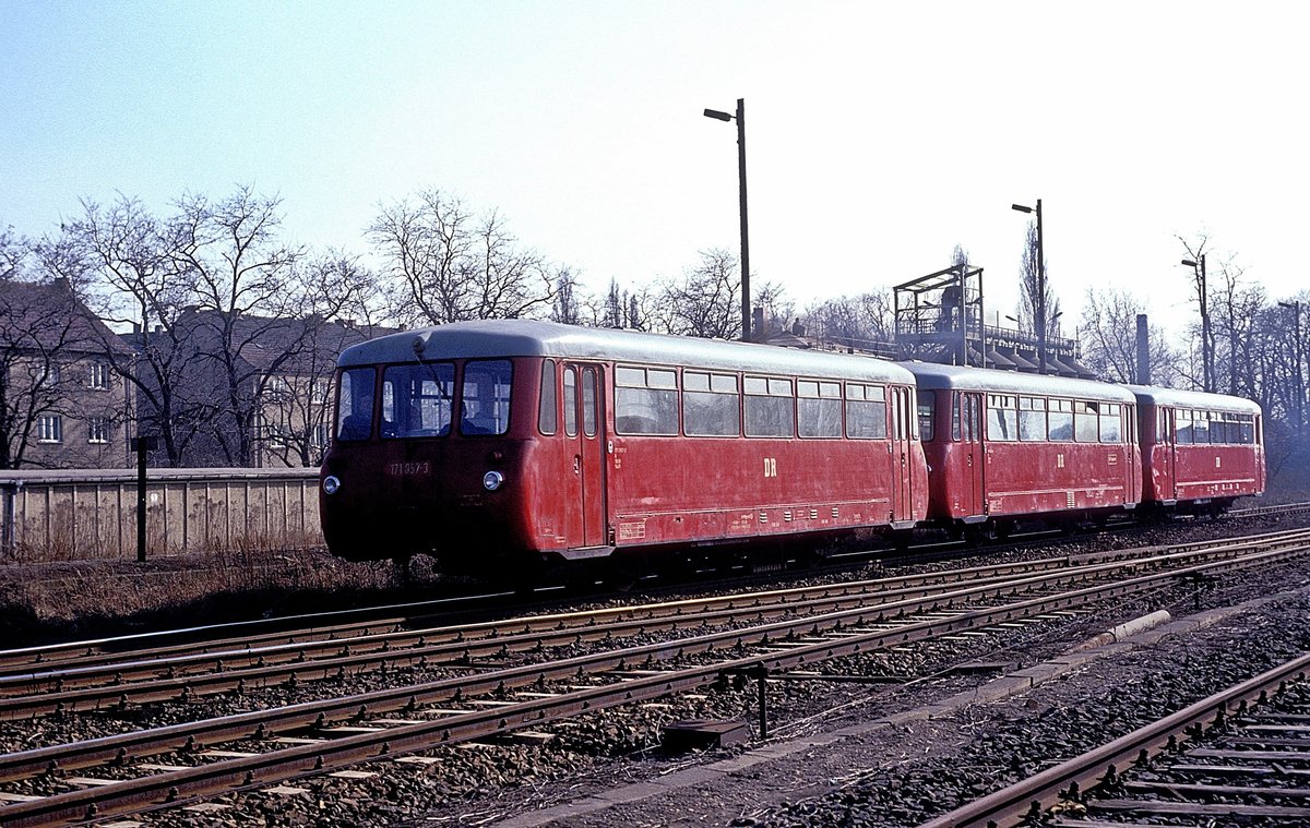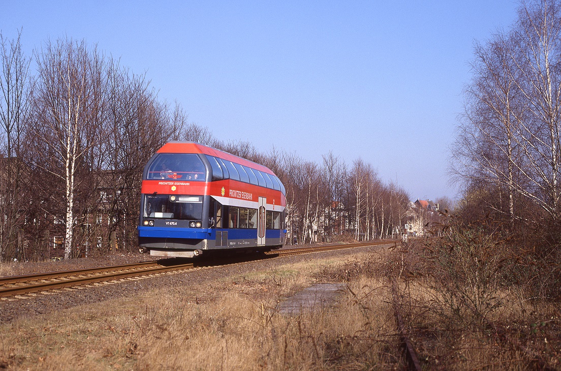 Vt670-4 in Diensten der Prignitzer Eisenbahn erreicht Duisburg Ruhrort mit PEG81075, 15.03.2003.