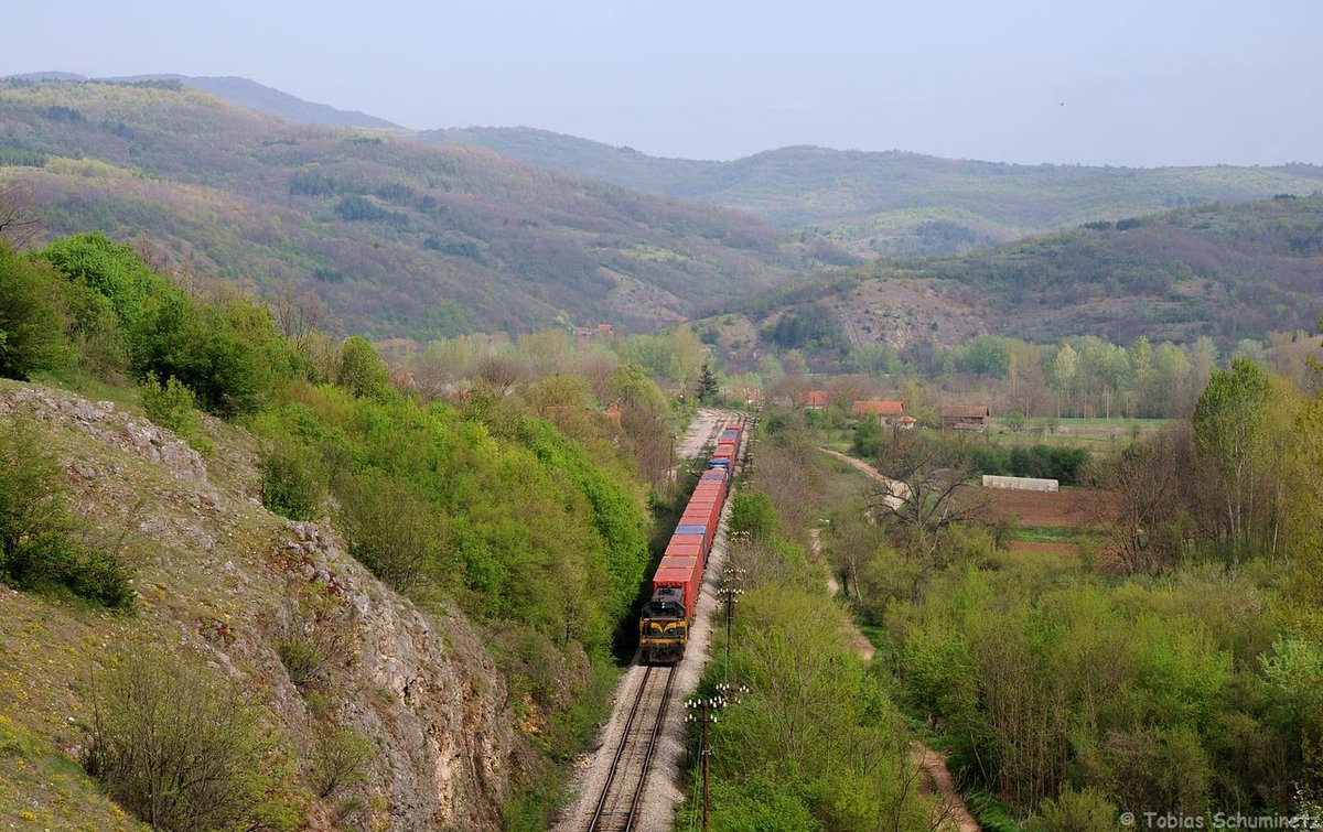 SŽ 643-035 zieht Kesselwagon durch Maribor-Tabor Richtung Tezno FBH. /7.2.2017