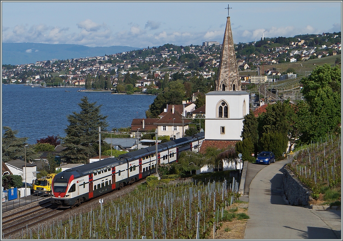 Bei Villette VD fährt ein RABe 511 als RE von Genève kommend Richtung Vevey.