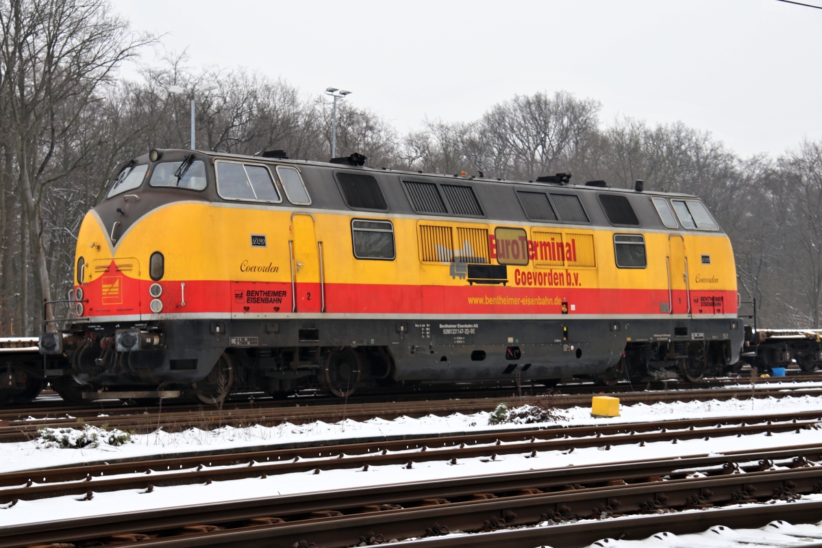 D 20 Coevorden 221 147-2 der Bentheimer Eisenbahn AG (NVR: 9280 1 221 147-2D-BE) am 09.02.2017 in Bad Bentheim "auf Arbeit wartend"...