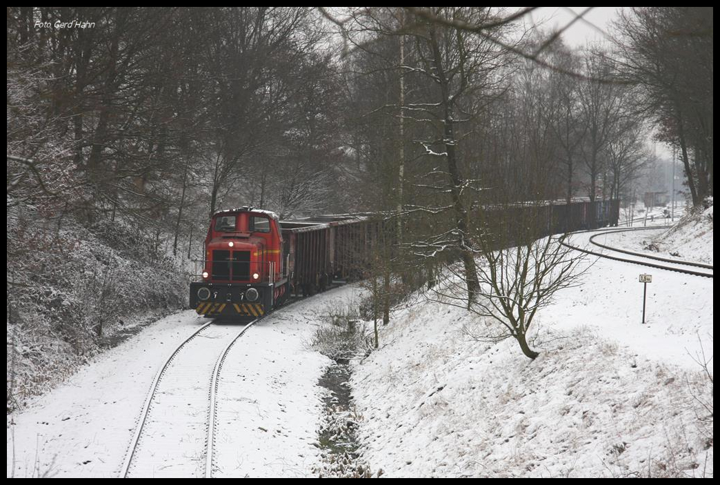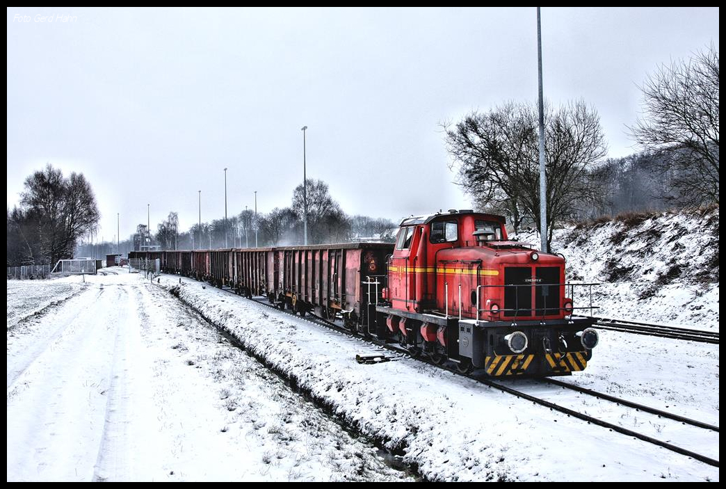 Deutz Lok GME 2 zieht am 7.2.2017 einen Schrottzug in das Ausziehgleis des Werkbahnhofs in Georgsmarienhütte.