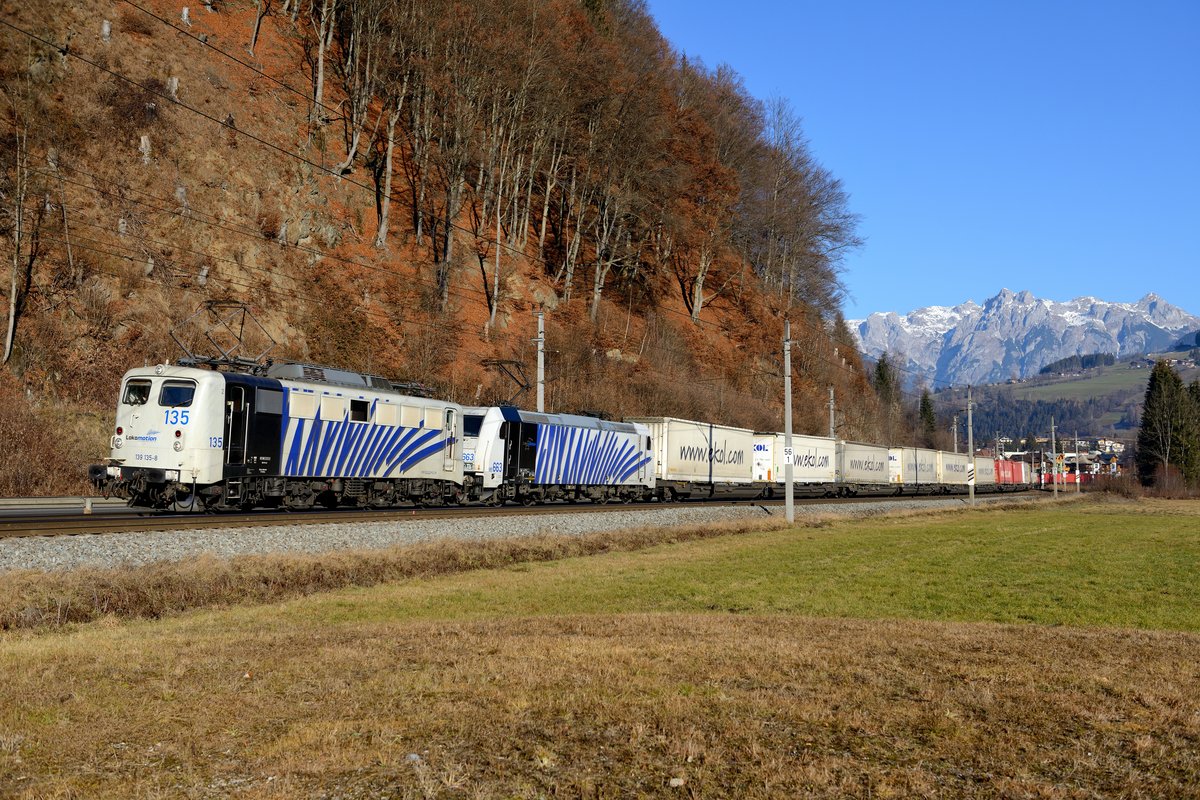 Ein schönes Weihnachtsgeschenk von Lokomotion: Am 24. Dezember 2015 wurde der TEC 41857 zwischen München Ost Rangierbahnhof und Schwarzach-St. Veit mit einem fotogenen Tandem, bestehend aus 139 135 und 185 663, bespannt. Aufgenommen werden konnte der Ekol-Zug nach Triest bei Mitterberghütten im Salzburger Land.
