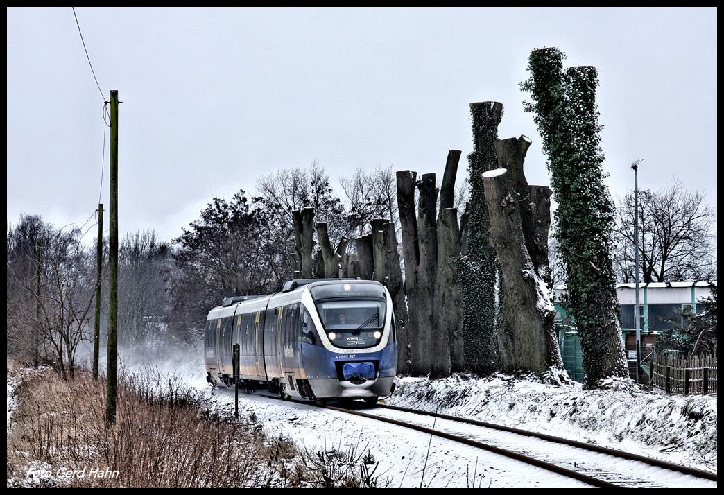 VT 643317 der Nordwestbahn hier am 7.2.2017 um 10.03 Uhr am ehemaligen Haltepunkt Malbergen des Haller Willem auf der Fahrt nach Osnabrück.