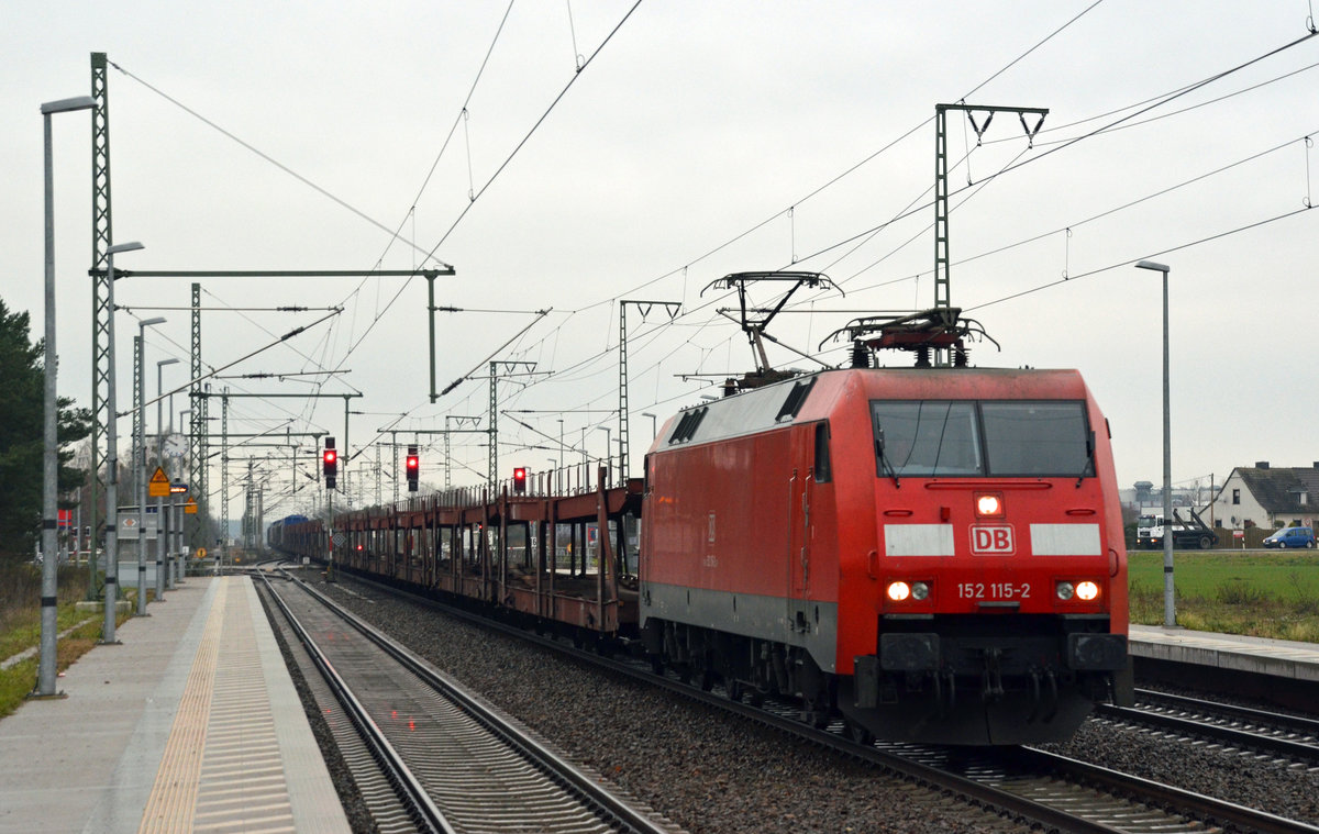 152 115 schleppte am 09.12.16 einen Autologistikzug durch Rodleben Richtung Wittenberg.