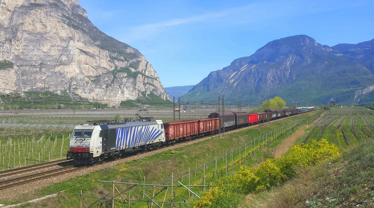 Am 15.04.2015 waren wir mit einem Kollegen im Italienurlaub. Hier zu sehen ein Güterzug mit der 186.440 von der Firma Lokomotion.