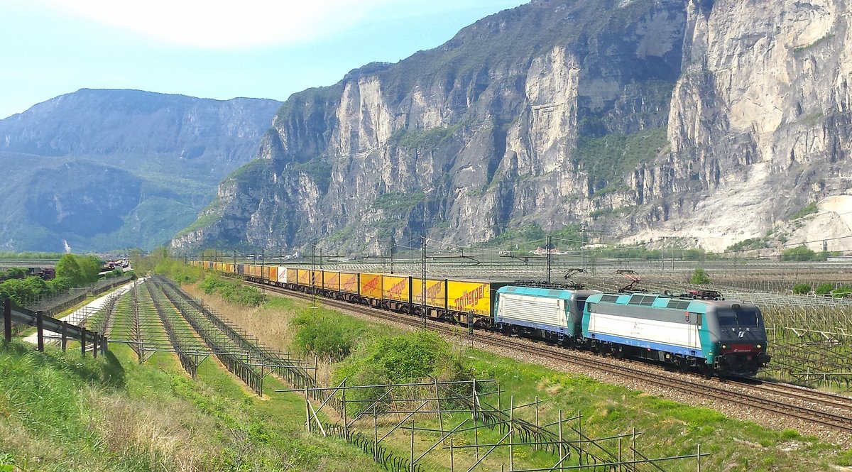 Am 15.04.2015 waren wir mit einem Kollegen im Italienurlaub. Auf diesem Bild ist ein Güterzug mit 2 Loks der Serie E 405 zu sehen.