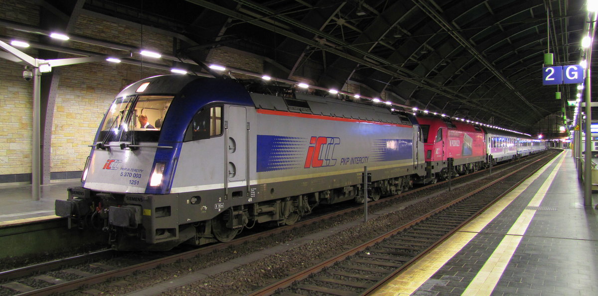 Am 28.12.2016 war ich in Berlin Ostbahnhof um ein paar Nachtfotos zu machen. Auf dem Bild ist der EC 47 nach Warschau zu sehen. Als Lok dienten 370 003 und 370 010.