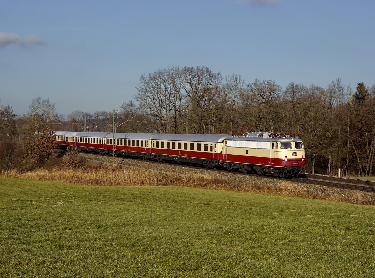 Die E 10 1309 mit einem Sonderzug am 29.12.2016 unterwegs bei Hilperting.