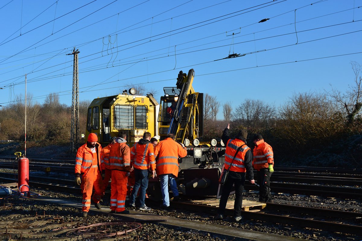 Am gestrigen Morgen gegen 4:00 Uhr morgens hatte ein Trafozug das Signal 44 N5 beschädigt und etwas in Schieflage gebracht. Gleis 4 und 5 waren während der Schieflage gesperrt da das Signal in den Lichtraum von Gleis 4 kommen konnte. Gegen 9:30 kamen dann der Gaf und einige Mitarbeiter der DB Netz und Leit und Sicherungstechnik aus Krefeld und sicherten das Signal gegen das Umkippen. Später wurde das Signal am Fuß per Flamme getrennt und vorsichtig nach hinten gezogen und herunter gelassen und auf Holzpaletten in Gleis 5 abgelegt. Während das Signal abgebrannt und abgelegt wurde, wurde die Oberleitung abgeschaltet und der Zugverkehr im kompletten Bahnhof zurück gehalten. Am Ende der Aktion wurde eine Sh2 Scheibe in Gleis 5 gestellt weil dort das beschädigte Signal lag.
