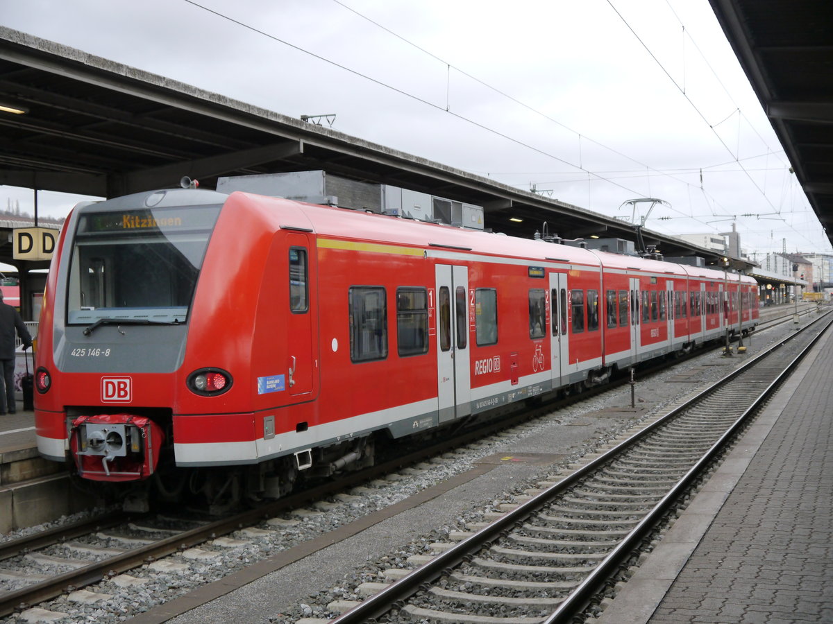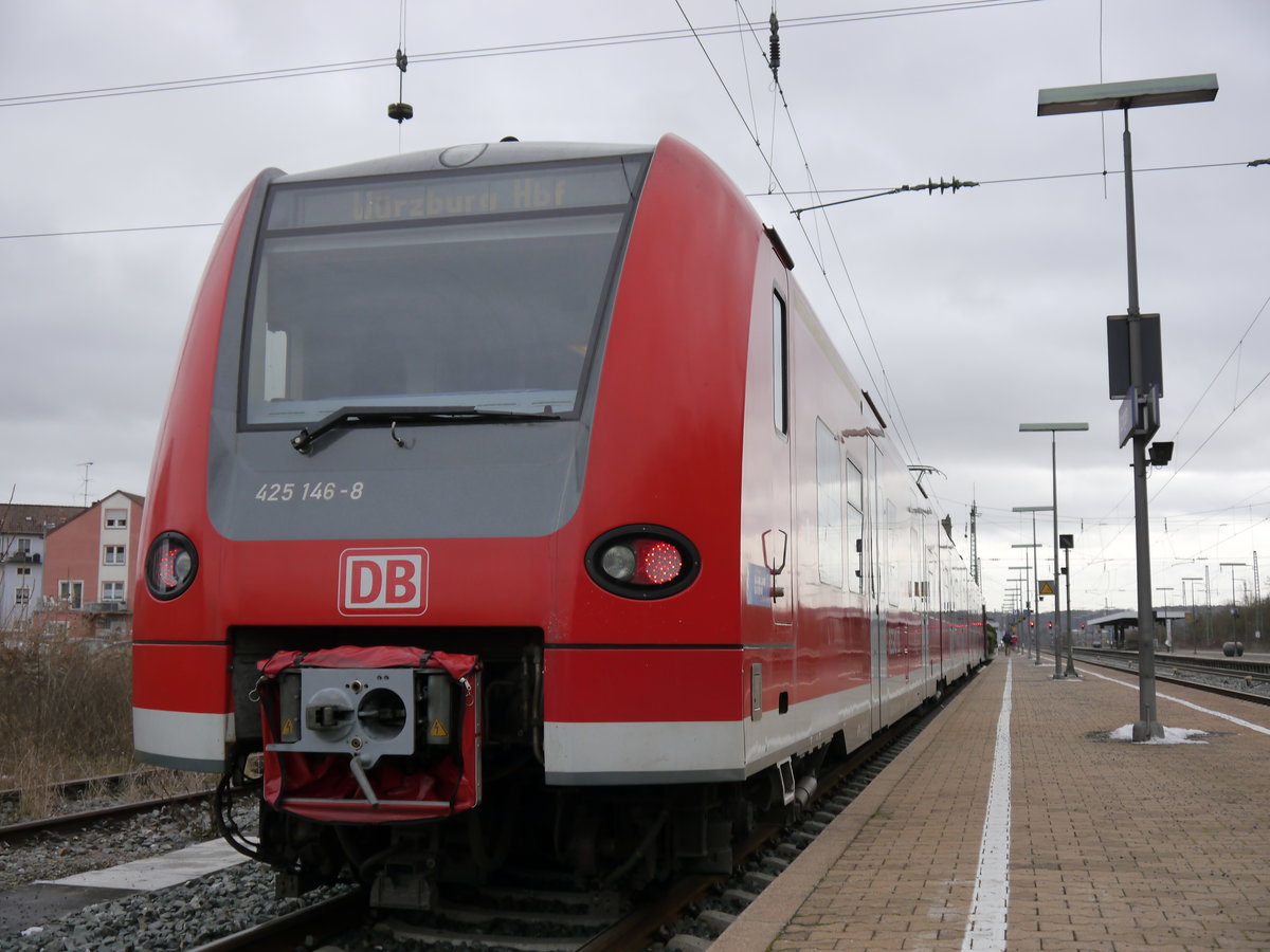 425 146 kam am 12.01.2017 als RB 58093 in Kitzingen auf Gleis 9 an. Dieser Zug fuhr nach kurzer Wendezeit wieder zurück als RB 58094 nach Würzburg Hbf.