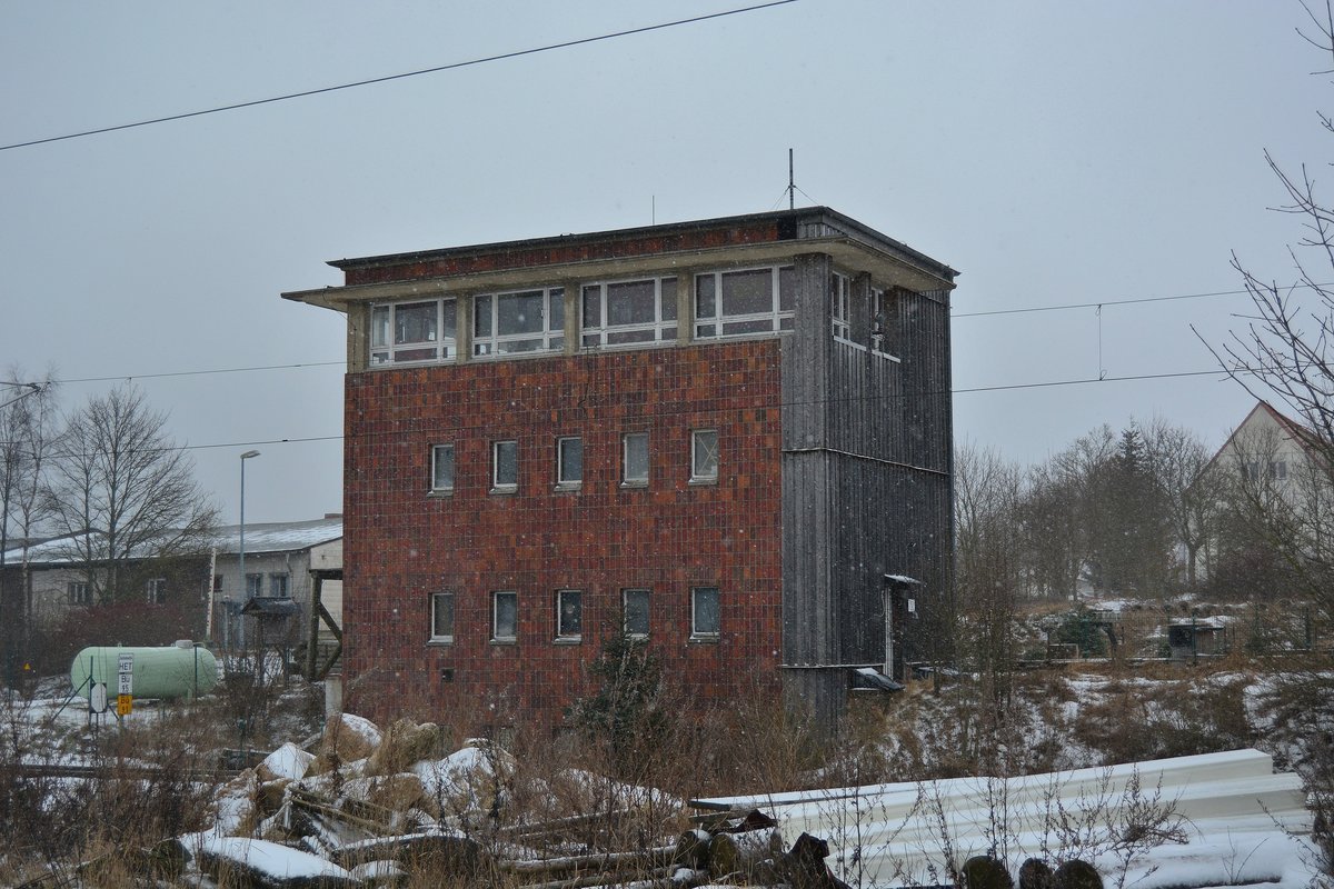 Blick auf das Stellwerk B3 in Blankenburg. Im oneren Teil des Stellwerks saß zu Reichsbahnzeiten der Bahnhofsdispatcher Blankenburg. Er war gleichzeitig der Streckendispatcher für die Rübelandbahn. Der obere Raum ist jedoch seit Jahren unbenutzt. Im unteren Teil des Stellwerks sitzt der Fahrdienstleiter. Er sitzt noch heute dort.
