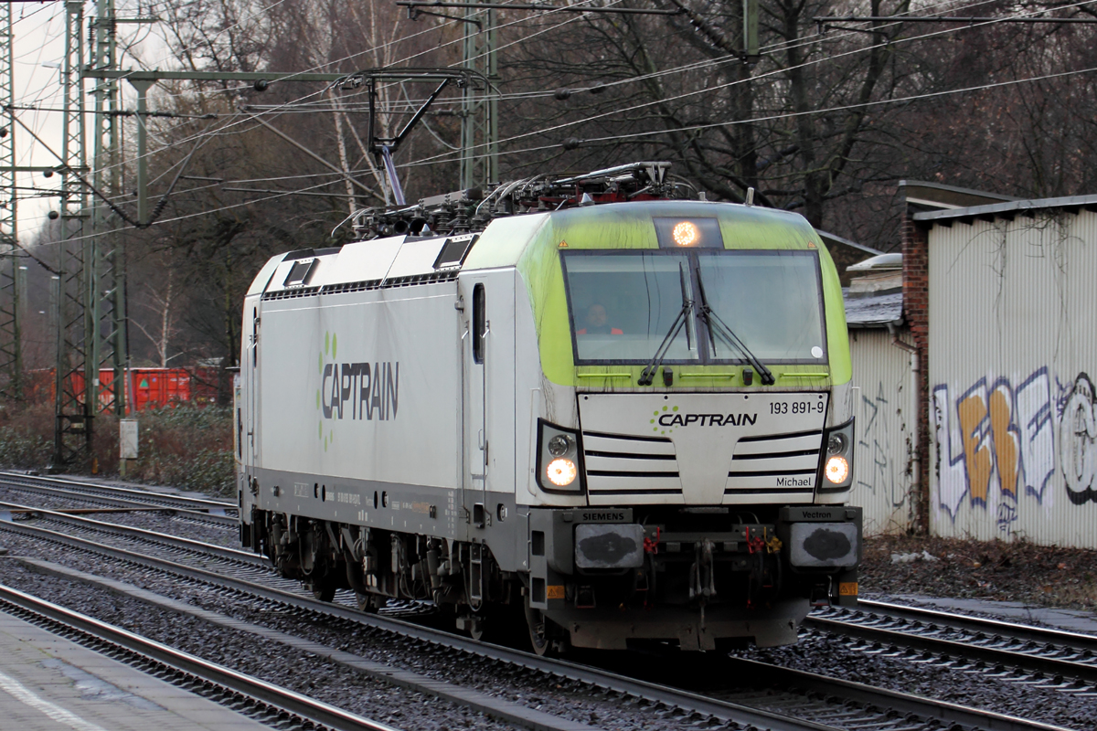 Auf den letzten Kilometern kommt die 185 696-2 mit dem Nievenheimer durch Allerheiligen gefahren. 8.1.2016