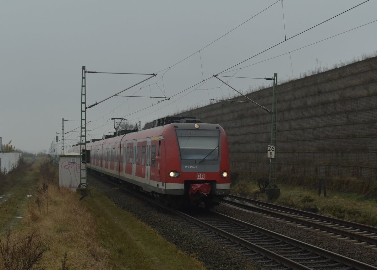 Nachschuß auf eine S11 an deren Ende der 423 258 zu erkennen ist. 8.1.2017
