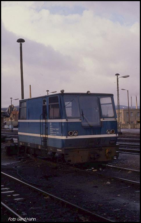 Gruppenfahrzeug der DR mit der Bezeichnung GKF 721 im Bahnhof Wernigerode am 14.2.1990.