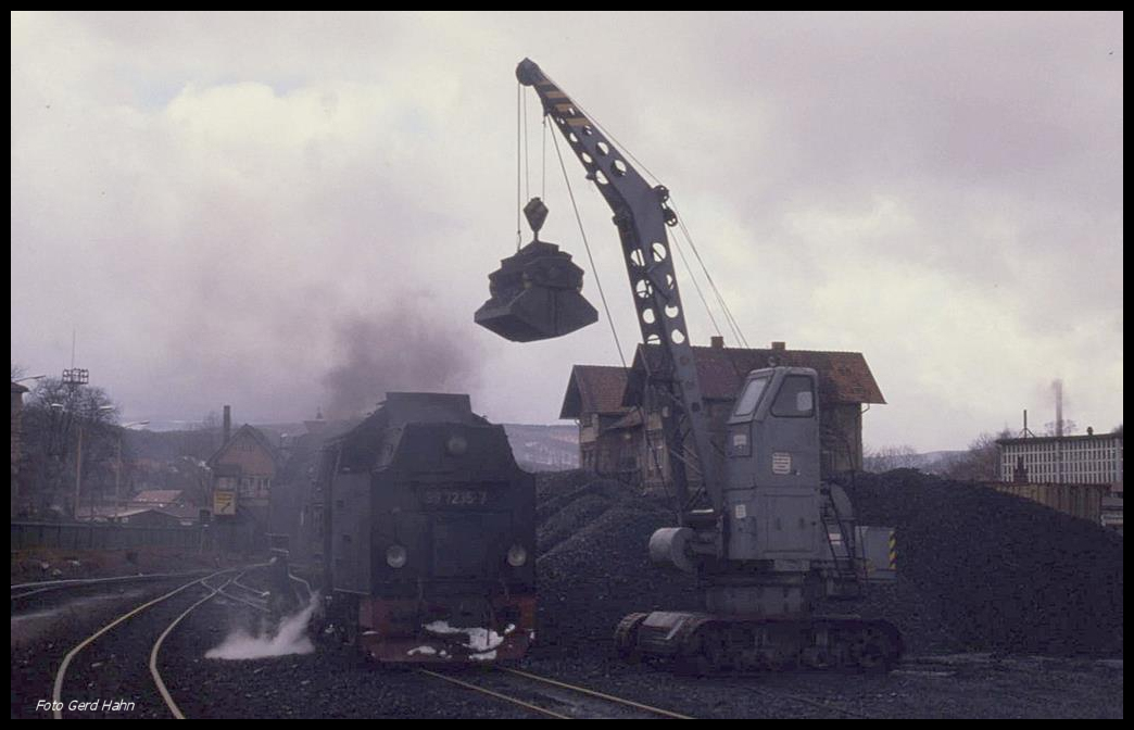 Kohlenbagger der Harzer Schmalspurbahn am 14.2.1990 im Einsatz im BW Wernigerode.