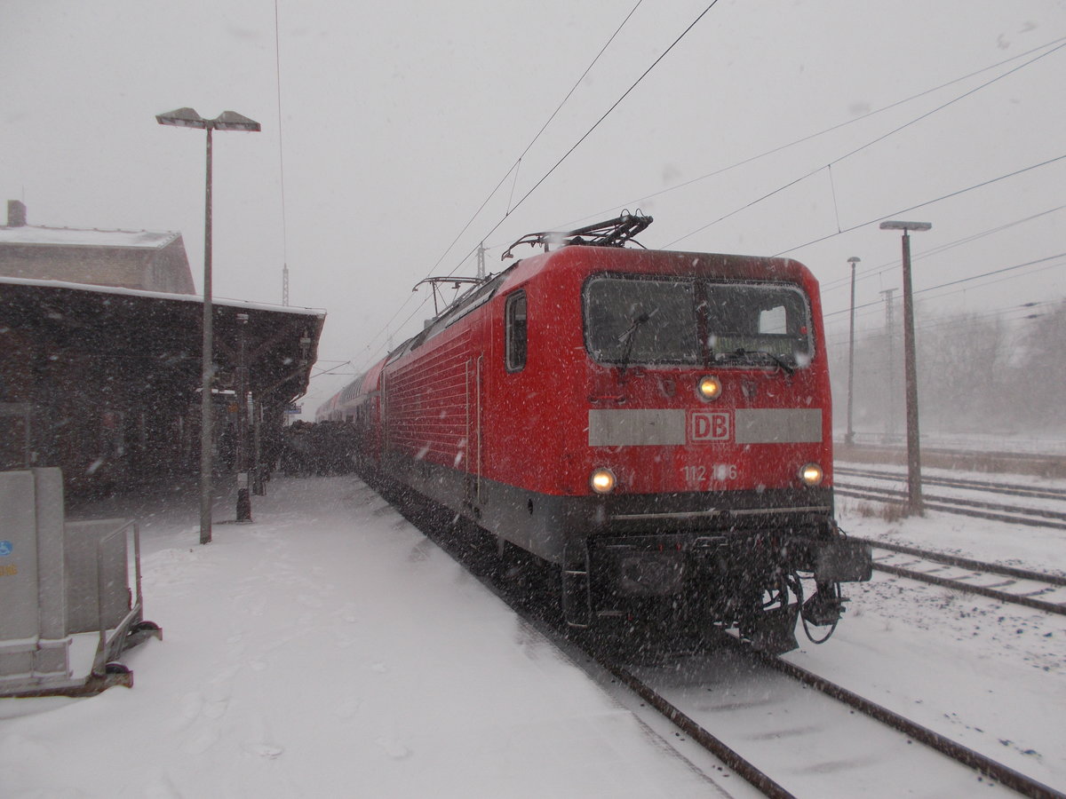 Zur Freude gab es,am 11.Januar 2017,wieder ein Ladyeinsatz auf Rügen.Hier war es die 112 186 die,mit dem RE 13027 Stralsund-Binz,Bergen/Rügen erreichte.