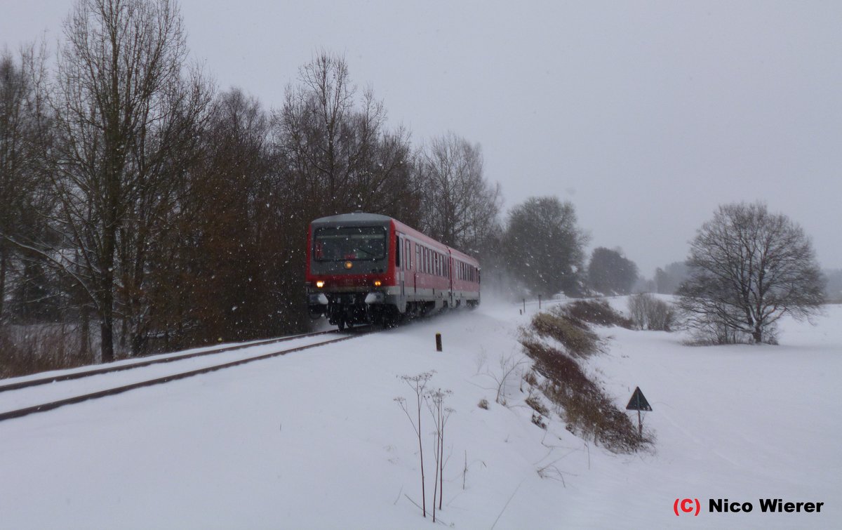 Hier der Ulmer 628 564 als RB nach Aulendorf, kurz vor Wangen(Allg)am 14.01.17