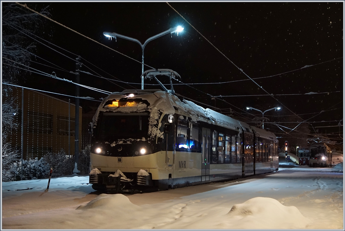 Der CEV MVR GTW ABeh 2/6 7502 wartet in Blonay als erster Zug nach Vevey auf die Abfahrt.