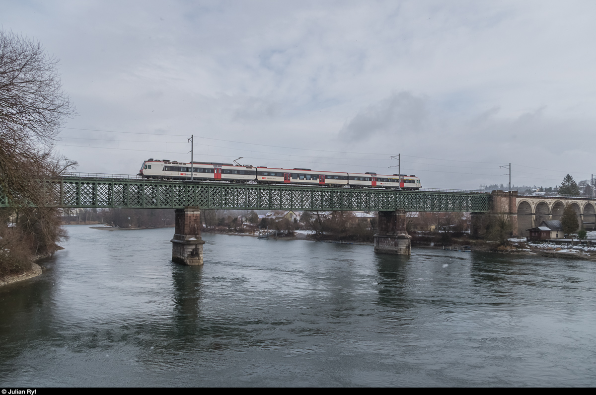 Ein SBB DOMINO erreicht am 14. Januar 2017 als S27 Baden - Waldshut deutschen Boden und damit in Kürze sein Ziel.