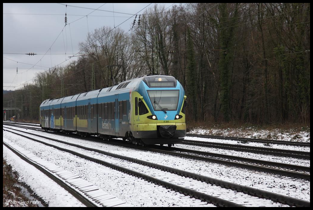 Für die Westfalenbahn ist es der letzte Winter auf der Rollbahn zwischen Osnabrück und Münster! Hier verlässt gerade WFB ET 015 am 13.01.2017 um 12.29 Uhr den Bahnhof Natrup Hagen auf dem Weg nach Osnabrück.